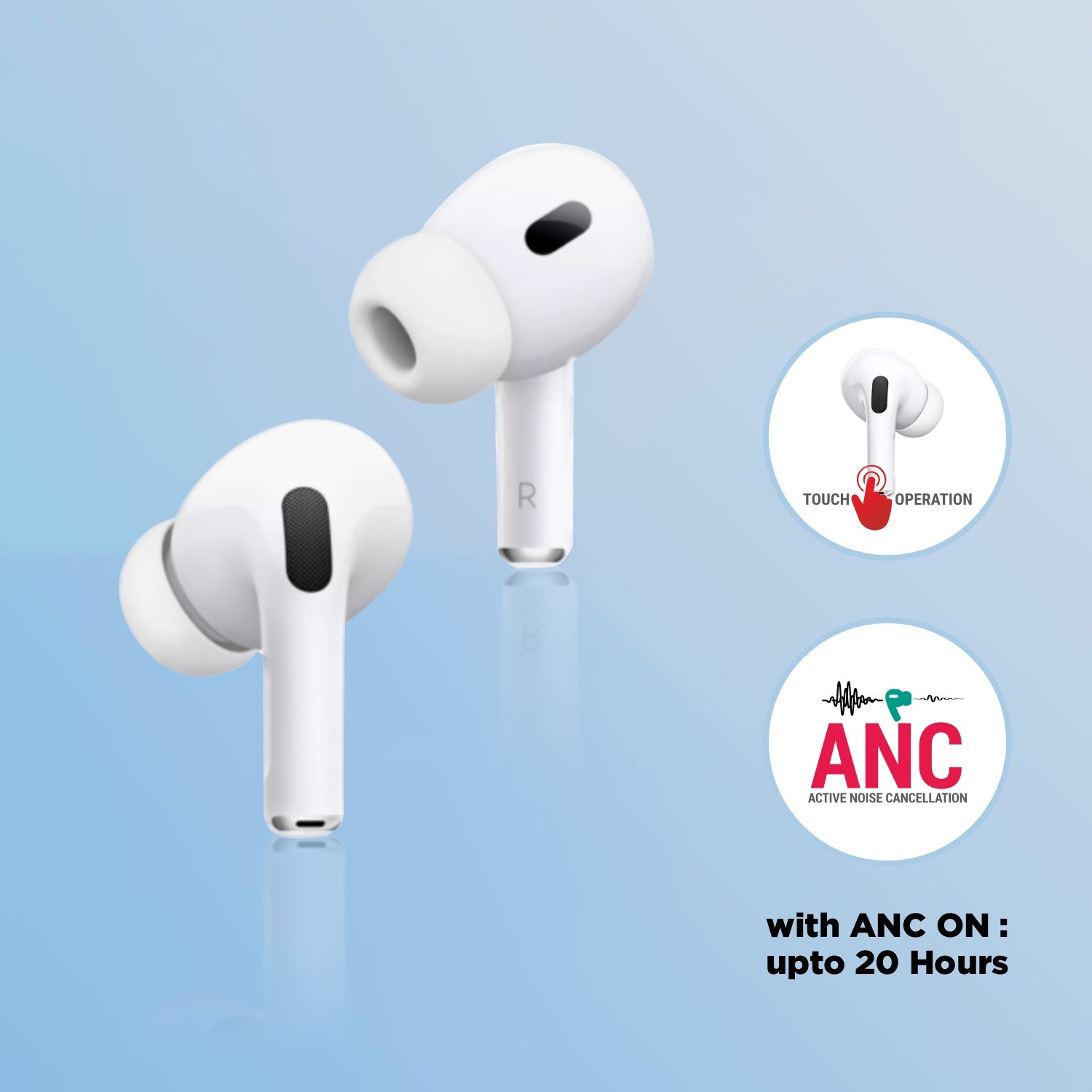 With a massive up to 40 hours of total playtime (and up to 20 hours with ANC ON), your audio keeps going as long as you do. Powered by 35mAh pure cobalt buds and a 300mAh charging case, enjoy long-lasting performance with Type-C fast charging.