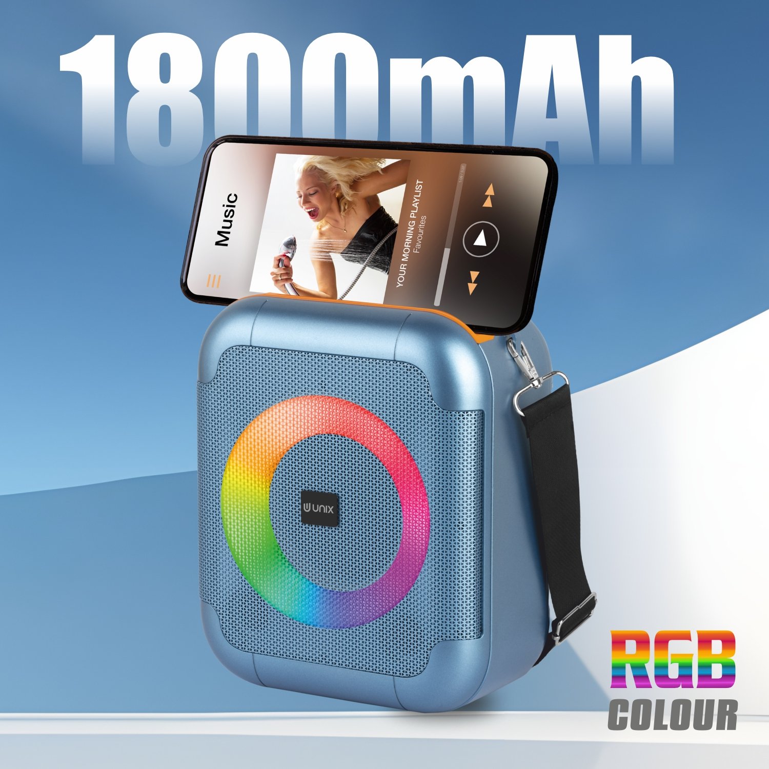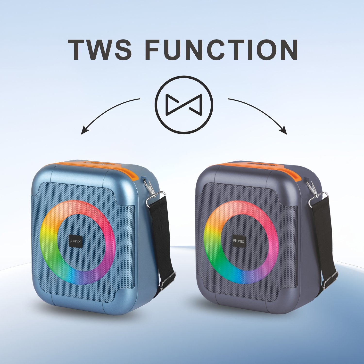 - π Portable Design β Built-in handle for easy carryingFeel the power of music with the UNIX Q Box XB-U66, a bold 20W wireless speaker that delivers room-filling sound with deep, punchy bass. Designed with RGB lighting, it creates a vibrant party atmosphere anywhere you go.With up to 15 hours of playtime on a single charge, a 1800mAh battery, and TWS pairing to connect two speakers for an even bigger sound, the Q Box is perfect for both indoor and outdoor fun. It supports multiple playback modes including FM radio, USB, and Bluetooth, plus itβs portable with a convenient carry handle. Available in stylish colours to match your vibe.
