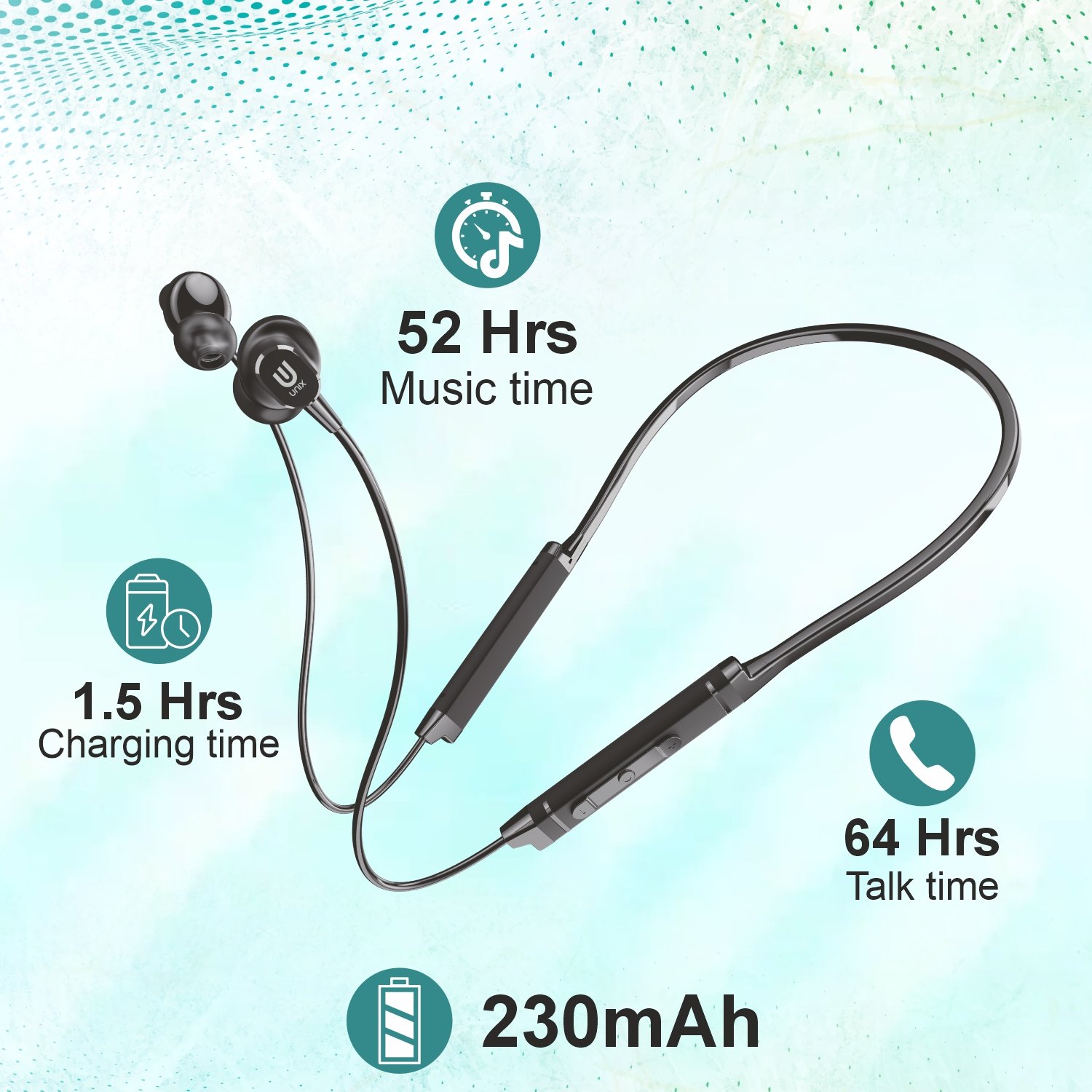 Unix Ux-900 Springer Wireless Neckband – Up to 52 Hours Playtime, Premium Bass, Type-C Fast Charging